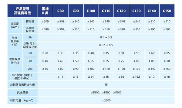 1)符合中华人民共和国住房和城乡建设部、国家质量检验检疫总局联合发布的《水泥基灌浆材料应用技术规范》(GB/T 50448-2015)标准;