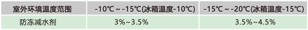 (2)最低使用温度-20℃,掺量3%~5%(占胶凝材料用量);(根据施工环境温度,选择不同掺量)